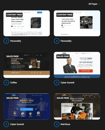 ⇨ To filter the page type, click "All Pages" at the top-right section of the page then select "Lead Pages."